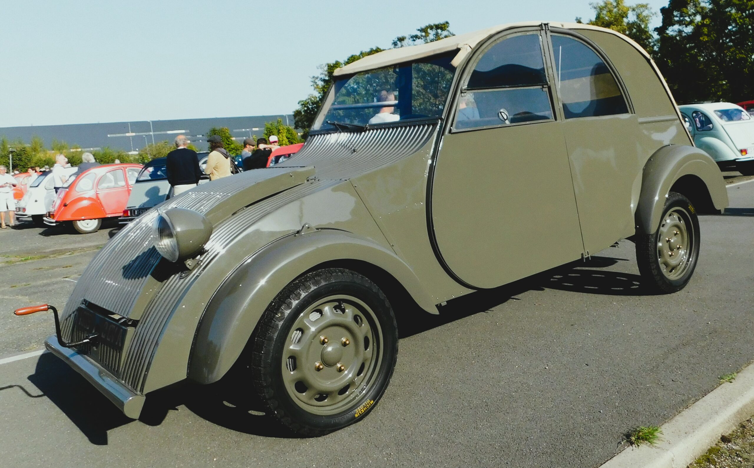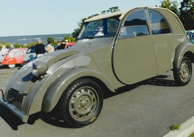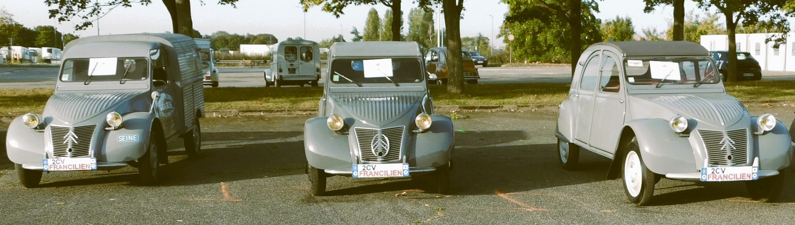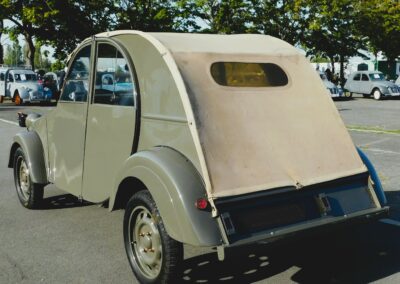 Plus d’une centaine d’entre elles étaient réunies sur le vaste parking qui fut autrefois une usine de montage automobiles à Aulnay sous bois. Parmi ces autos, un des prototype restauré, caché à la Ferté Vidame durant une période sombre de l’histoire, ce cyclope s’affiche habituellement avec ses consœurs à l’intérieur du conservatoire. Parmi les raretés quelques modèles A, à chevrons dans un ovale des années cinquante. Autour du Cyclope les deux complices de l’Atelier des Chevrons, Jehef et Gab avaient amené une AZU Pompiers, et une 2 cv spéciale GAB légèrement raccourcie. Le tout sous un soleil d’été Indien, dans la bonne humeur et la convivialité, sous la houlette de Denis Huille, Eric Leton, et l’équipe des bénévoles habituellement présents au conservatoire.