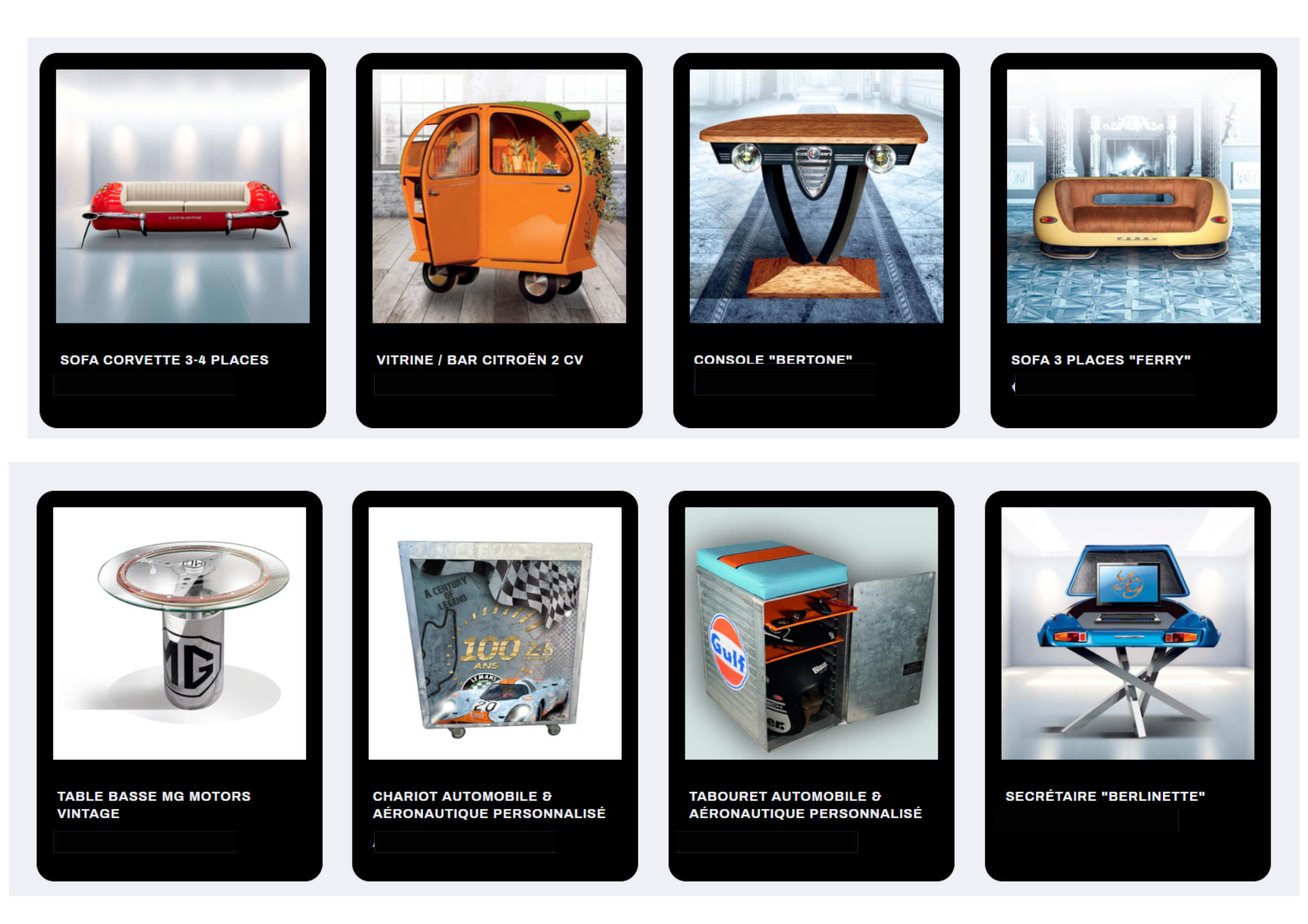 C’est pourquoi nous récupérons par exemple des pièces de voitures de collection pour en faire des lampes automobiles élégantes, des accessoires trônant fièrement sur votre bureau, du mobilier d’artiste d’exception qui donneront une âme unique à votre intérieur. Ces objets d’arts plein d’histoire resteront les témoins vivants de cet art de vivre, continueront à traverser les générations, préservant ainsi l’âme de ces voitures emblématiques et des personnes qui ont vécu des souvenirs inoubliables avec elles.
