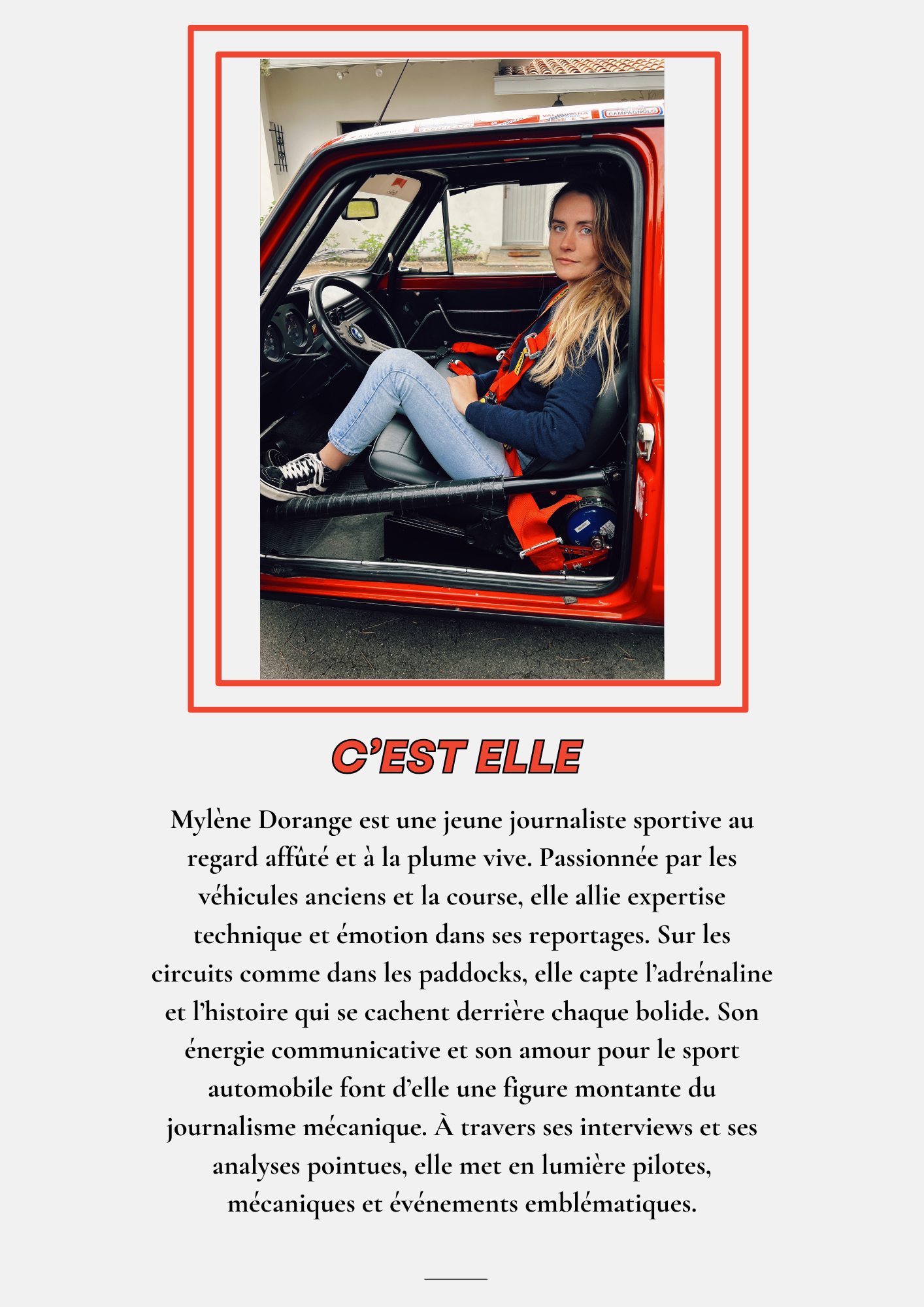 cette Ă©quipe 100 % fĂ©minine qui fait de la course automobile, et câest gĂ©nial. Mais, pour ĂȘtre franche, je nâai jamais ressenti de vraie barriĂšre pour les femmes dans lâautomobile en gĂ©nĂ©ral. Jâai toujours trouvĂ© quâon Ă©tait bien acceptĂ©es. En revanche, en sport auto, pour les pilotes, câest vrai quâil y en avait beaucoup moins. Mais aujourdâhui, ça change, et câest hyper motivant de voir toute une nouvelle gĂ©nĂ©ration arriver. Il y a de plus en plus de filles qui se lancent, et ça fait vraiment plaisir. Ăvidemment, on doit ça aux pionniĂšres. Des femmes comme Michelle Mouton ont ouvert la voie, et câest grĂące Ă elles que les jeunes filles osent rĂȘver plus grand et se lancer Ă leur tour. Donc, globalement, dans le monde de lâautomobile, je ne trouve pas quâon ait eu tant de barriĂšres. Au contraire, il y a de plus en plus de femmes passionnĂ©es et engagĂ©es, que ce soit en tant que pilotes ou dans dâautres rĂŽles, et ça, câest juste gĂ©nial !