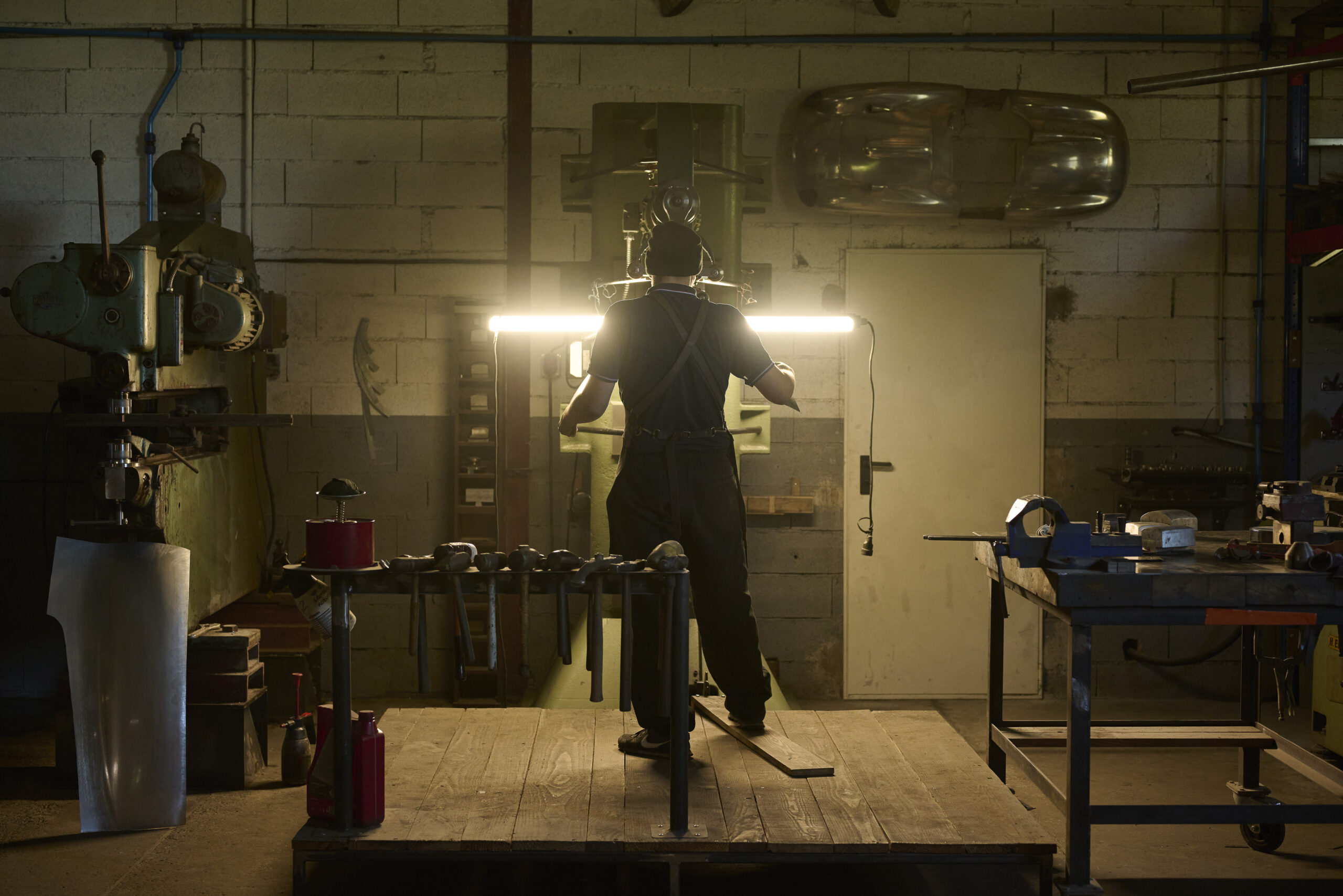 Au cours de ma carrière, l’acquisition il y a quelques années du marteau-pilon (ou martinet – power hammer) Pettingell a été une expérience inoubliable, marquée par un voyage aux États-Unis. Travailler quotidiennement avec ces marteaux exceptionnels, aux côtés de tôliers-formeurs renommés tels que Mike Kleeves et Hans Sahling d’Automobile Métal Shaping (A.M.S.), a été une opportunité unique. Leur implication dans la création de la Bugatti Type 64 en magnésium pour la collection Peter Mullin reste un moment emblématique.