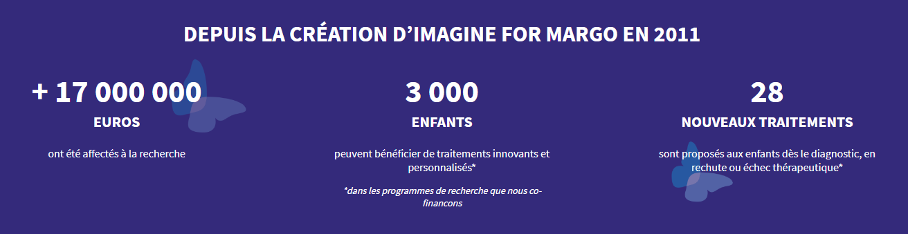 - Lever des fonds pour financer la recherche contre le cancer des enfants – tous les dons sont versés à Imagine for Margo Children without cancer.