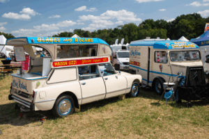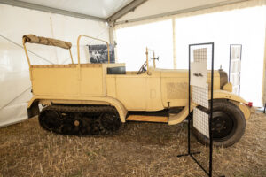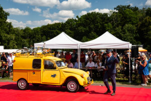 Cette réunion était nourrie par plusieurs rendez-vous organisés tout au long du week-end, à commencer par le concours d’élégance, dont le jury était présidé par Henri-Jacques Citroën, descendant bien connu du créateur de la marque. Il a réuni des modèles très représentatifs de l’histoire de Citroën dont certains particulièrement rares. Citons ainsi cette authentique 2CV AZU fourgonnette de La Poste avec son porte-vélo réglementaire, cette rarissime Visa série spéciale Carte Noire venue de Suisse ou encore cette ID 20 « Voiture de Maître », un des trois exemplaires encore existants et le seul postérieur au restylage. C’est cependant une Citroën C4F Torpedo de 1931 venue par la route d’Allemagne qui a remporté le Grand-Prix, avec son équipage impeccablement vêtu en tenue d’époque, comme d’ailleurs la plupart des participants. Un dîner de gala le samedi soir, des concerts, une tombola donnant à gagner une petite Ami électrique et des conférences consacrées à l’histoire de la marque complétaient ce programme chargé. Un village marchand était également installé, permettant de se ravitailler en pièces, en livres, en miniatures et bien sûr en victuailles. Un musée éphémère réunissait quelques raretés et modèles phare, dont la fameuse DS « Ballons » reconstituée pour l’édition 2025 de Rétromobile, une chenillette Kegresse et des rares tracteurs Citroën. Les organisateurs ne cachaient pas leur satisfaction durant l’événement, même s’il est encore trop tôt pour juger de sa pérennité. L’intention est cependant bien là, le matériel de communication ayant été conçu pour pouvoir être réutilisé. C’est tout le mal que l’on peut souhaiter à ce nouveau rendez-vous !