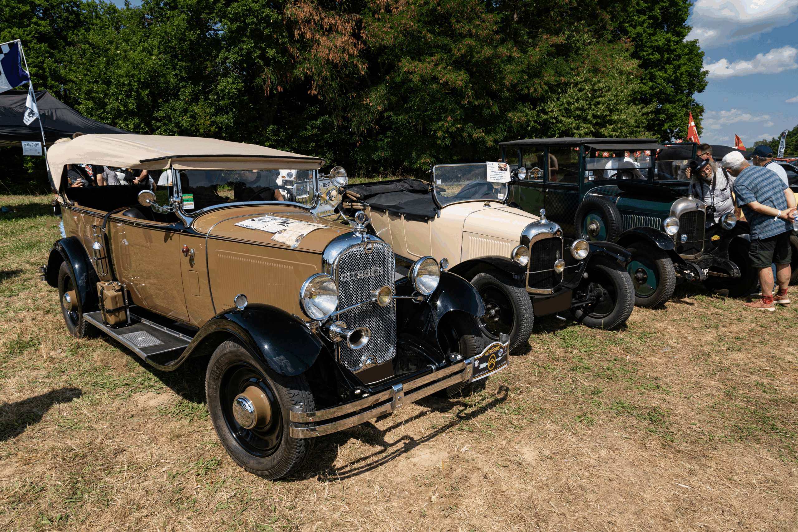 - La Citroën C4F Torpedo de 1931 au premier plan a remporté le concours d’élégance. Ses propriétaires allemands sont venus avec par la route !