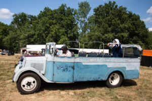 - Ce Citroën T23 RU d’excursion de 1946, dans ses couleurs dauphinoises d’époque, a participé au concours d’élégance, avec des passagers en grande tenue.