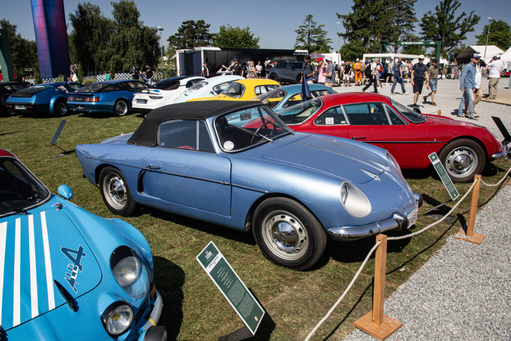 Aux couleurs de la FFVE, l’exposition Alpine réunissait douze modèles historiques près du village.