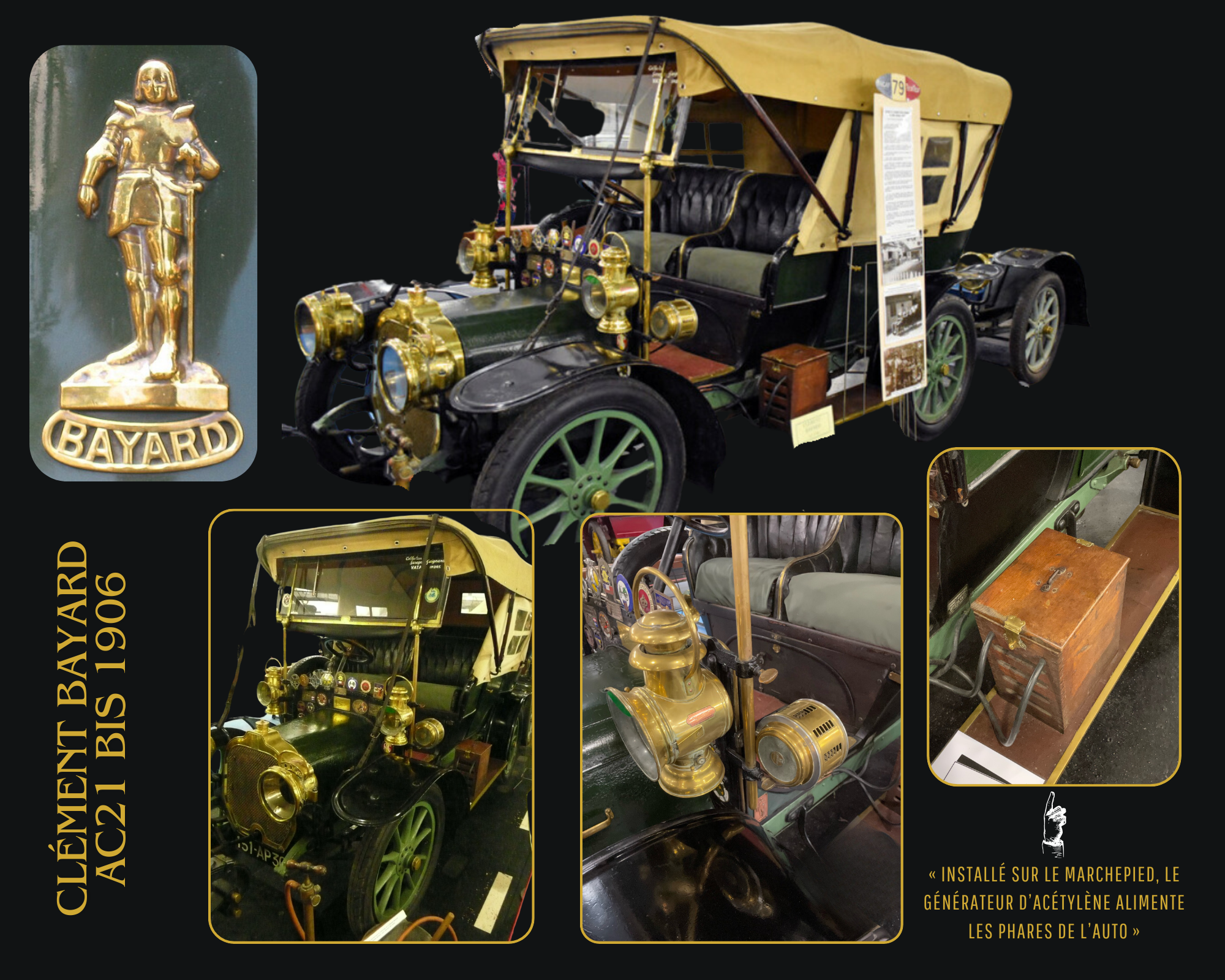 Quelques mots sur ce constructeur né à la fin du 19ème siècle et disparu à l’aube des années 20. Son fondateur Adolphe Clément a été un pionnier et industriel réputé, parmi les plus importants en France avant la 1ère guerre mondiale. Sous le nom Clément, puis Clément-Gladiator et enfin Clément-Bayard, l’entreprise a fabriqué des vélos, devenant dans les années 1890 le premier fabricant français de cycles et le représentant exclusif en France des pneus Dunlop. La 1ère voiture est lancée en 1896 et une vaste usine est construite d’assemblage à Levallois en 1901. De nombreux succès en compétition et le développement à l’étranger, notamment en Angleterre, assoient la réputation de l’entreprise. Clément-Bayard se lance en 1908 dans la construction de dirigeables. Le premier dirigeable à franchir la Manche en 1910 est d’ailleurs le Clément-Bayard N°1 ! Aujourd’hui, on voit régulièrement les Clément-Bayard dans les musées automobile, reconnaissables à la figurine du célèbre chevalier qui orne les calandres ou radiateurs de ces autos.