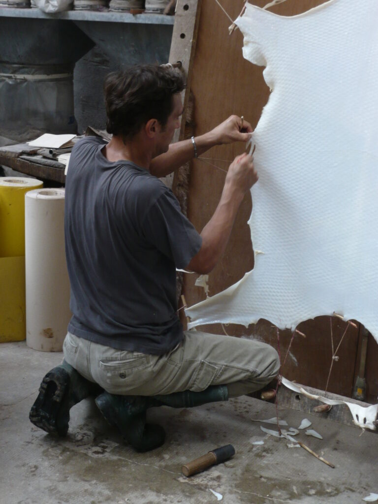 Frédéric Dumas : Il faut compter un mois et trente opérations manuelles. Pour réaliser du cuir il y a cent opérations ! Nous profitons tout de même de la technologie pour faciliter la tâche mais les processus ancestraux restent les mêmes.