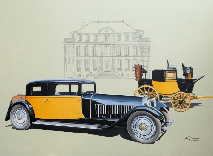 À travers ses tableaux, Francois Vanaret prouve que la carrosserie Francaise doit être valorisée comme un savoir-faire artisanal et un patrimoine artistique international & à ce titre, inscrit a l’UNESCO, démarche menée avec le soutien de la FFVE.