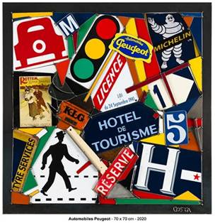 Depuis 1998, Costa collecte à travers la France et ailleurs, les panneaux recyclés de signalisation routière périmés. Son univers est fondamentalement différent et jusqu’alors inexploré. Il découpe, taille, ponce et recompose des images en soudant les morceaux sur de grandes plaques de métal créant ainsi des tableaux stupéfiants d’originalité.